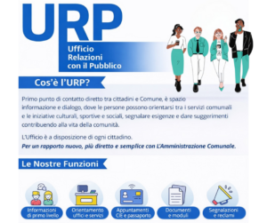 L’Ufficio Relazioni con il Pubblico (URP) rappresenta il primo punto di contatto diretto tra cittadini e Comune. È uno spazio di ascolto, informazione e dialogo, pensato per aiutare ogni persona a orientarsi tra i servizi comunali e le iniziative culturali, sportive e sociali. Qui è possibile segnalare esigenze, proporre idee e suggerimenti, contribuendo attivamente alla vita della comunità.