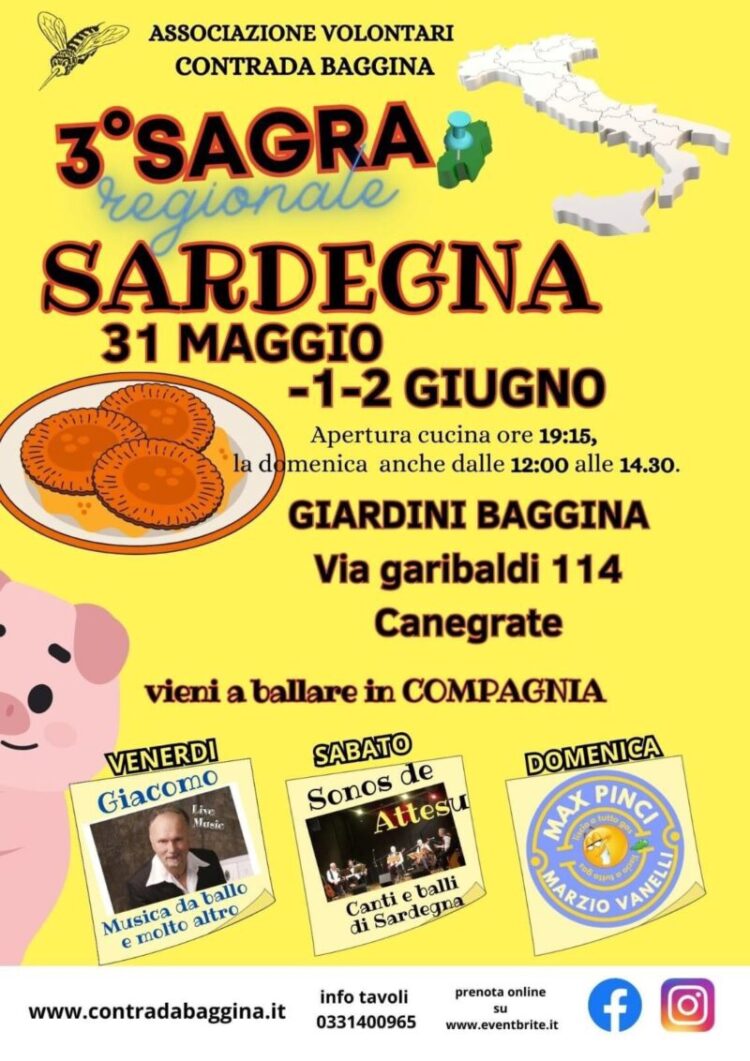 Da oggi fino a Domenica 2 Giuigno ai Giardini di Contrada Baggina, in Via Garibaldi 114/A, si propone una carrellata di sapori di Sardegna.