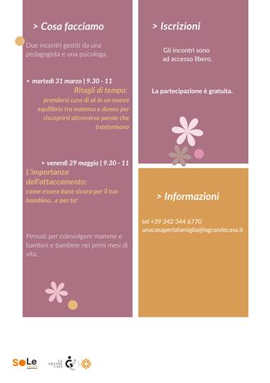 n percorso fatto di momenti di confronto, condivisione e supporto, per aiutare le famiglie a trovare nuovi equilibri, rafforzare il legame affettivo e vivere con maggiore consapevolezza questa fase così importante della vita.