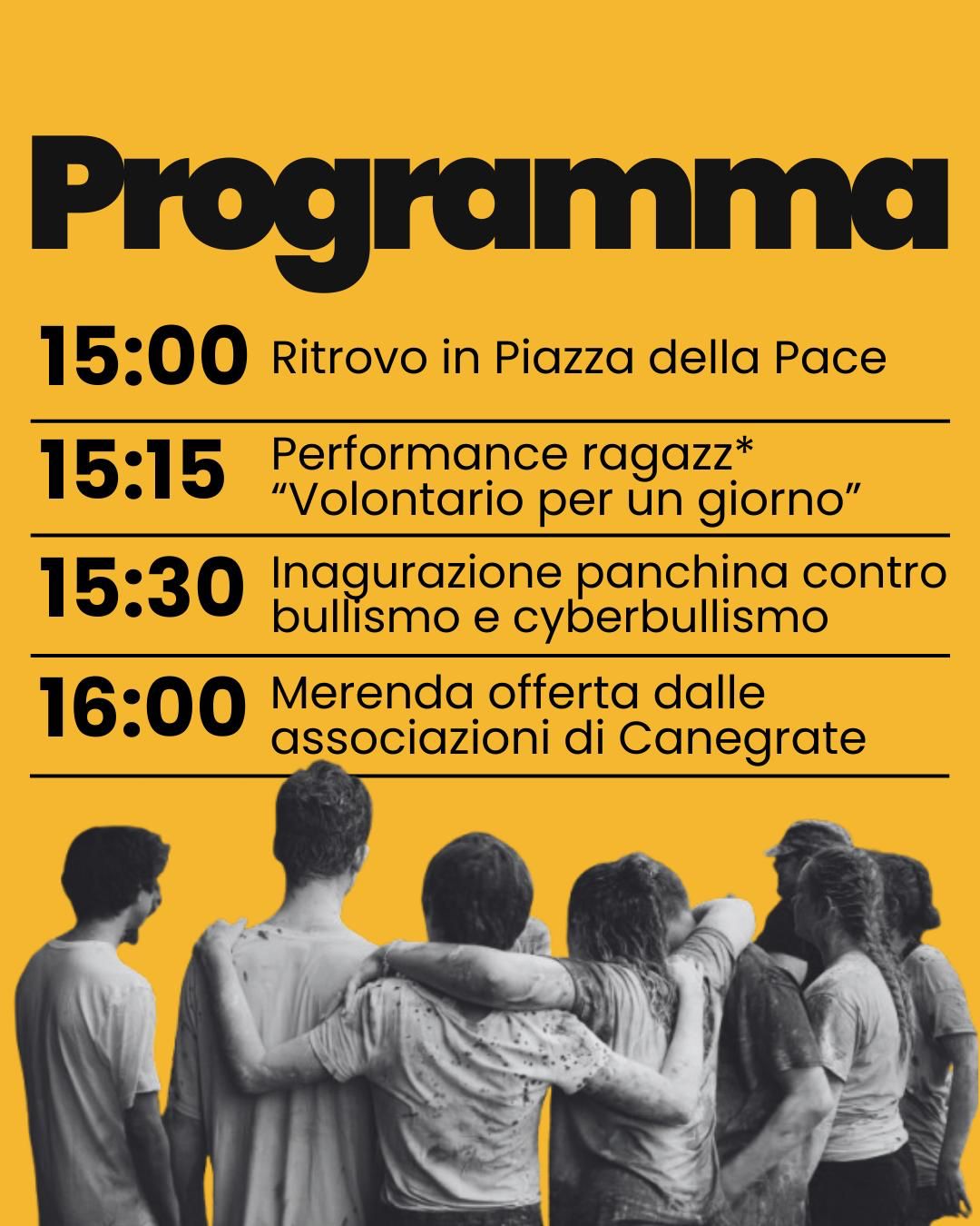 A partire dalle h. 15:00, i ragazzi e le ragazze vi aspettano in Piazza della Pace a Canegrate, per dire forte e chiaro: “IL BULLISMO È VIOLENZA”.