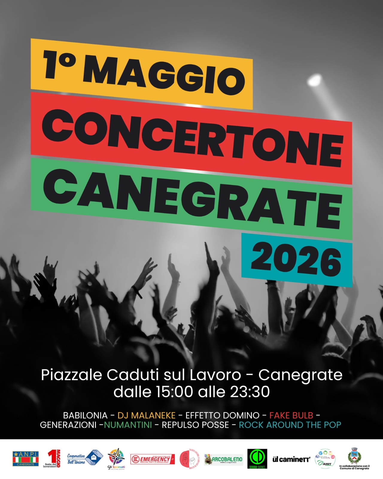 In occasione della Festa dei Lavoratori, il Comune di Canegrate promuove il Concertone del 1° Maggio 2026, una giornata di musica dal vivo, socialità e partecipazione.