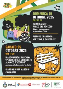 - sabato 25 ottobre h.17:30 inaugurazione della panchina “prevenzione e contrasto al gioco d’azzardo” nei giardini pubblici di Via Marconi.