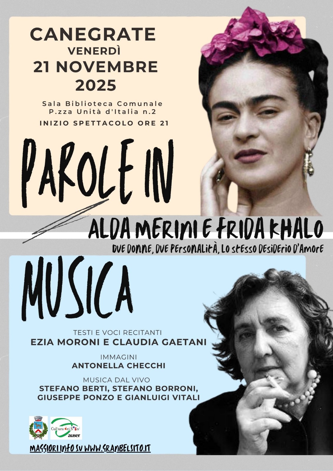 Un sottile filo conduttore lega le due donne, Alda Merini, poetessa italiana del novecento e Frida Kahlo pittrice e artista messicana, entrambe accomunate dalla ricerca dell’amore, dalla passione per l’arte, sempre in bilico fra la voglia di vivere e la sofferenza più profonda.