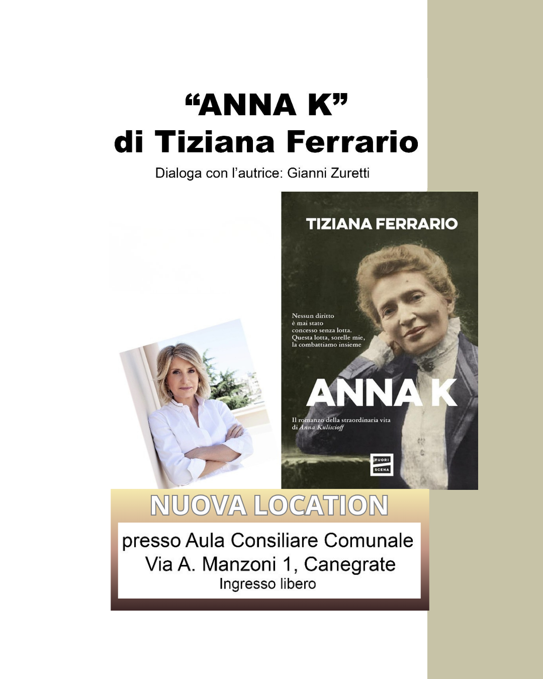 A cura di ANPI, giovedì 19 marzo alle h. 20.45 presso Aula Consiliare Municipio, via Manzoni 1 – Canegrate, presentazione del libro “ANNA K” di Tiziana Ferrario