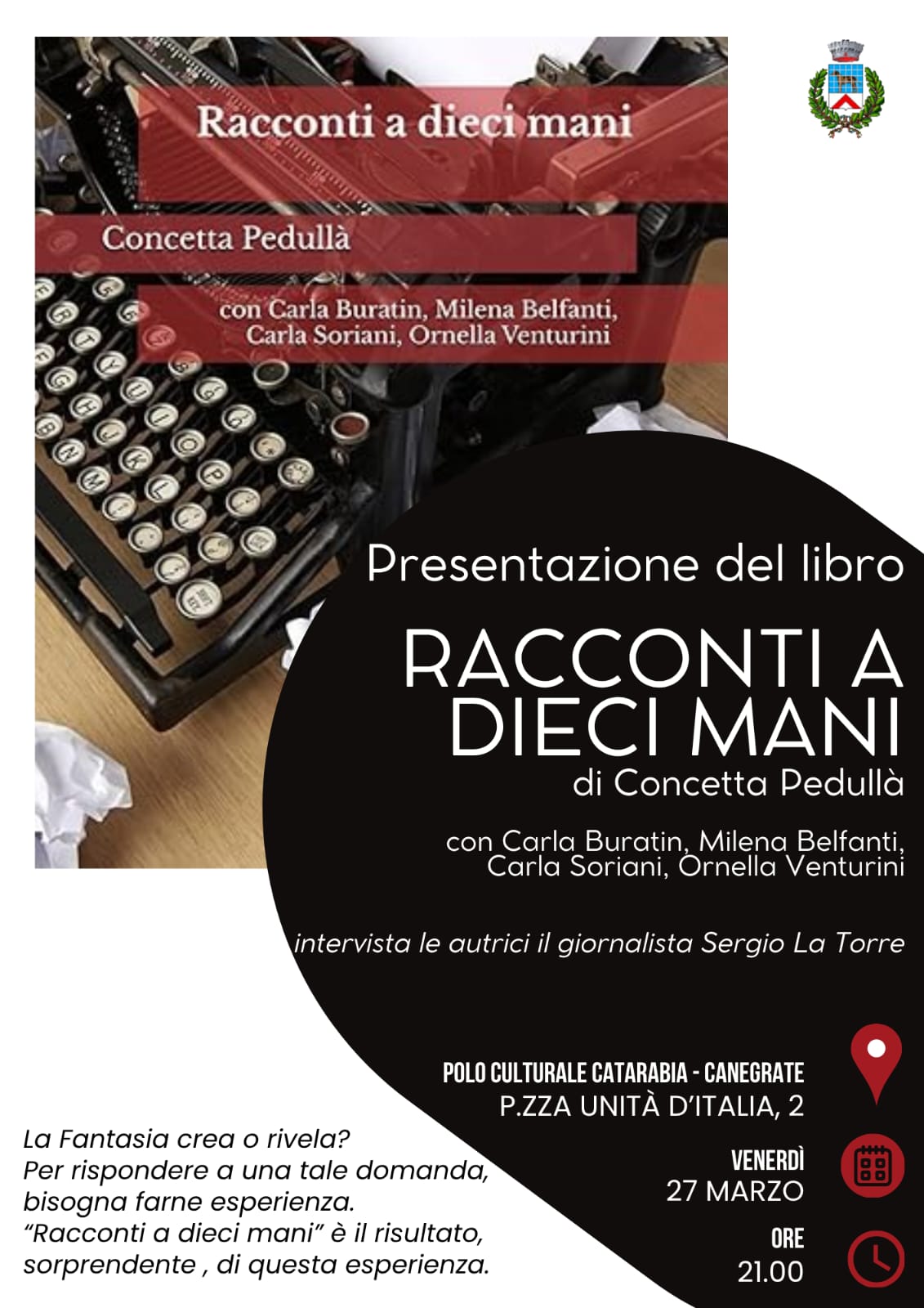 A cura dell’Amministrazione Comunale, venerdì 27 marzo alle h. 21 -presso Polo Catarabia, presentazione del libro “RACCONTI A DIECI MANI”