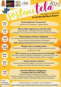 Ristorante e centro di aggregazione e di promozione sociale e culturale, lancia la rassegna “SosteneTELA: dai beni confiscati la ricetta del buon essere”, una settimana ricca di appuntamenti per riflettere, conoscere, imparare cosa significa oggi “essere antimafia” e che mette al centro l’importanza di dare valore ai beni confiscati.
