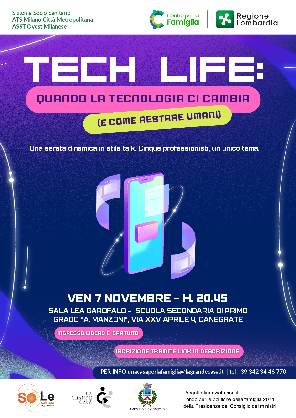 Una serata dinamica in stile talk per riflettere su come la tecnologia influenza la nostra vita, la salute e le relazioni.